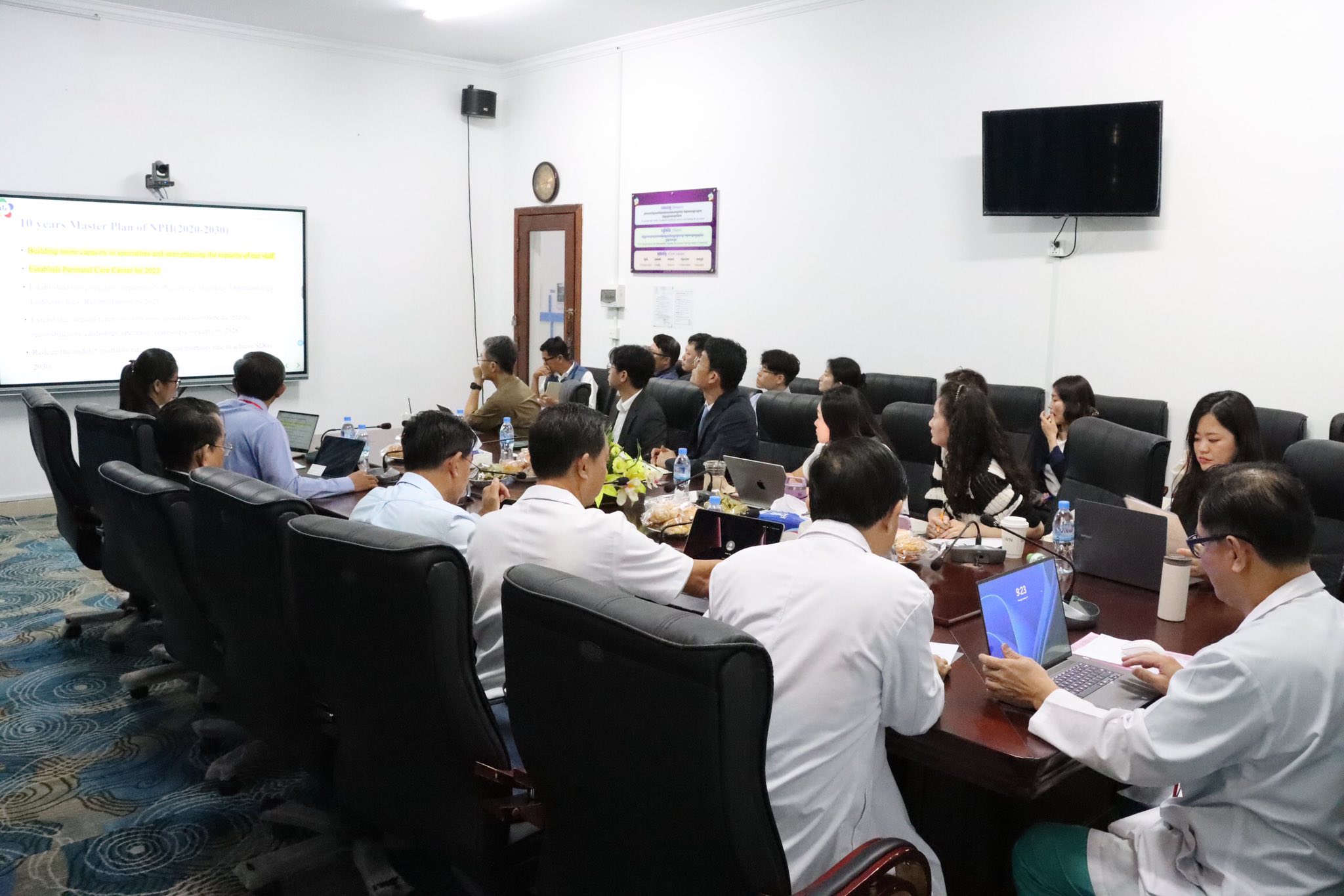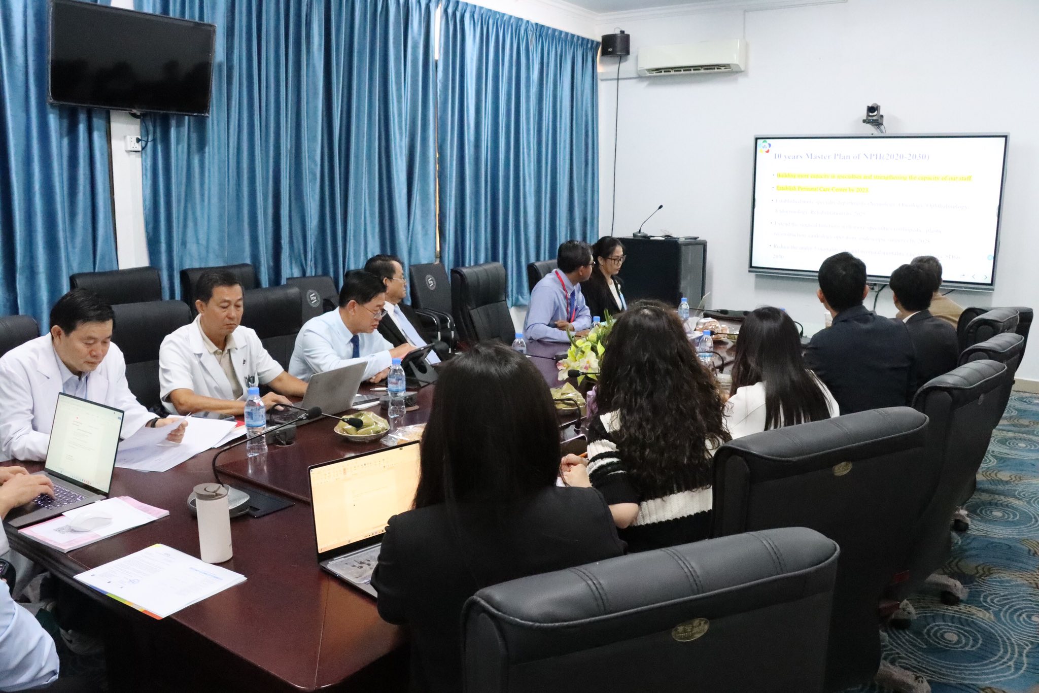 NPH’s director, H.E. Dr. Nhip Angkeabos lead the meeting discussion between NPH’s training team and working team of KOICA project to discuss about course training available for strengthening comprehensive public health system in Ratanakiri province.