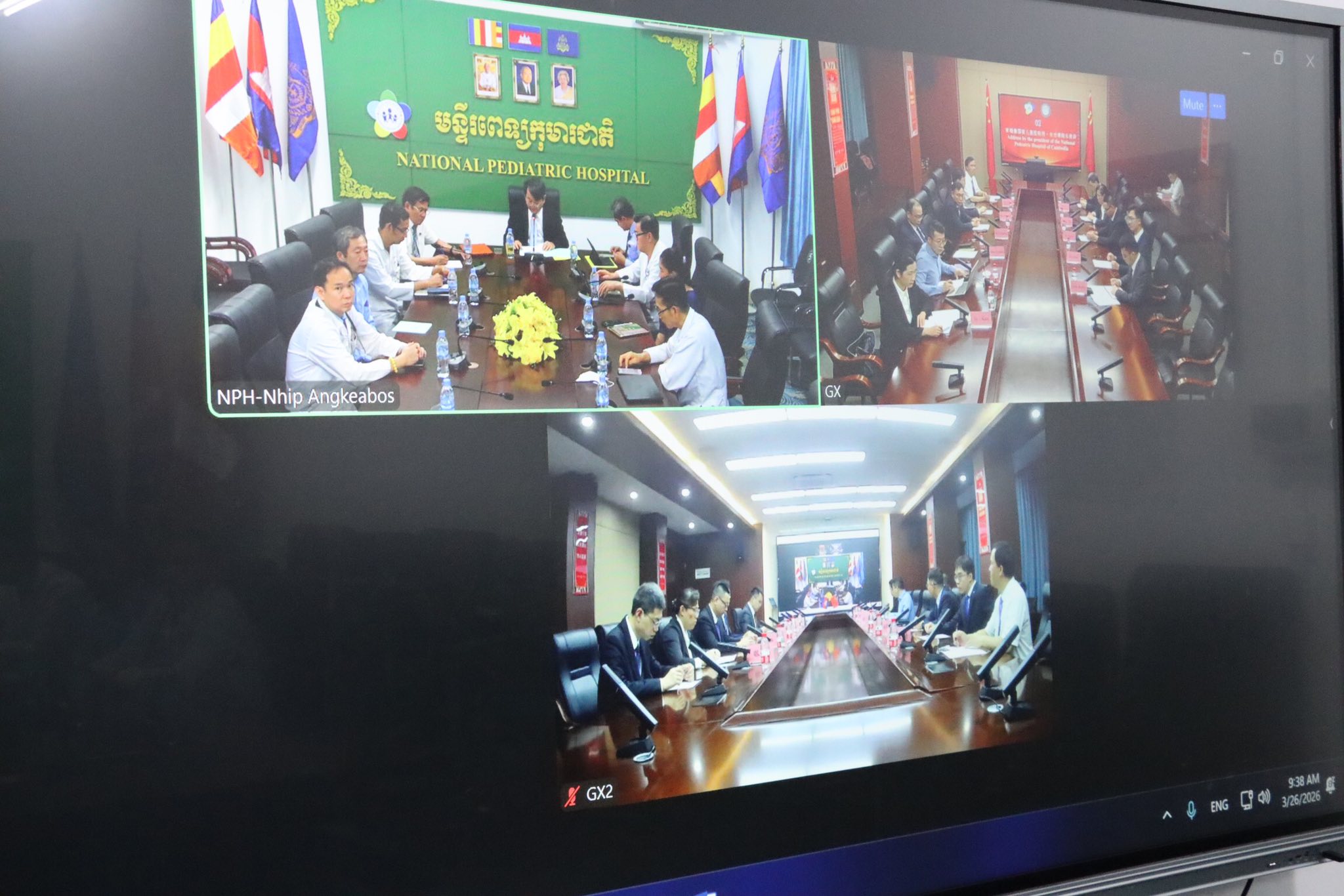 នាព្រឹកថ្ងៃព្រហស្បតិ៍ ៨កើត ខែចេត្រ ឆ្នាំម្សាញ់ សប្តស័ក ព.ស. ២៥៦៩ ត្រូវនឹងថ្ងៃទី១៧ ខែមីនាឆ្នាំ ២០២៦ ឯកឧត្ដមវេជ្ជបណ្ឌិត ញឹប អង្គាបុស្ស នាយកមន្ទីរពេទ្យកុមារជាតិ លោកនាយករង លោកសាស្រ្តាចារ្យ លោកវេជ្ជបណ្ឌិតឯកទេស លោកប្រធាន/អនុប្រធានធានការិយាល័យ លោក-លោកស្រីសាស្រ្តាចារ្យប្រធានផ្នែក/អនុប្រធាន បានចូលរួម ពិធីចុះកិច្ចអនុស្សរណៈយោគយល់គ្នារវាង មន្ទីរពេទ្យ Guangxi និងមន្ទីរពេទ្យកុមារជាតិ។