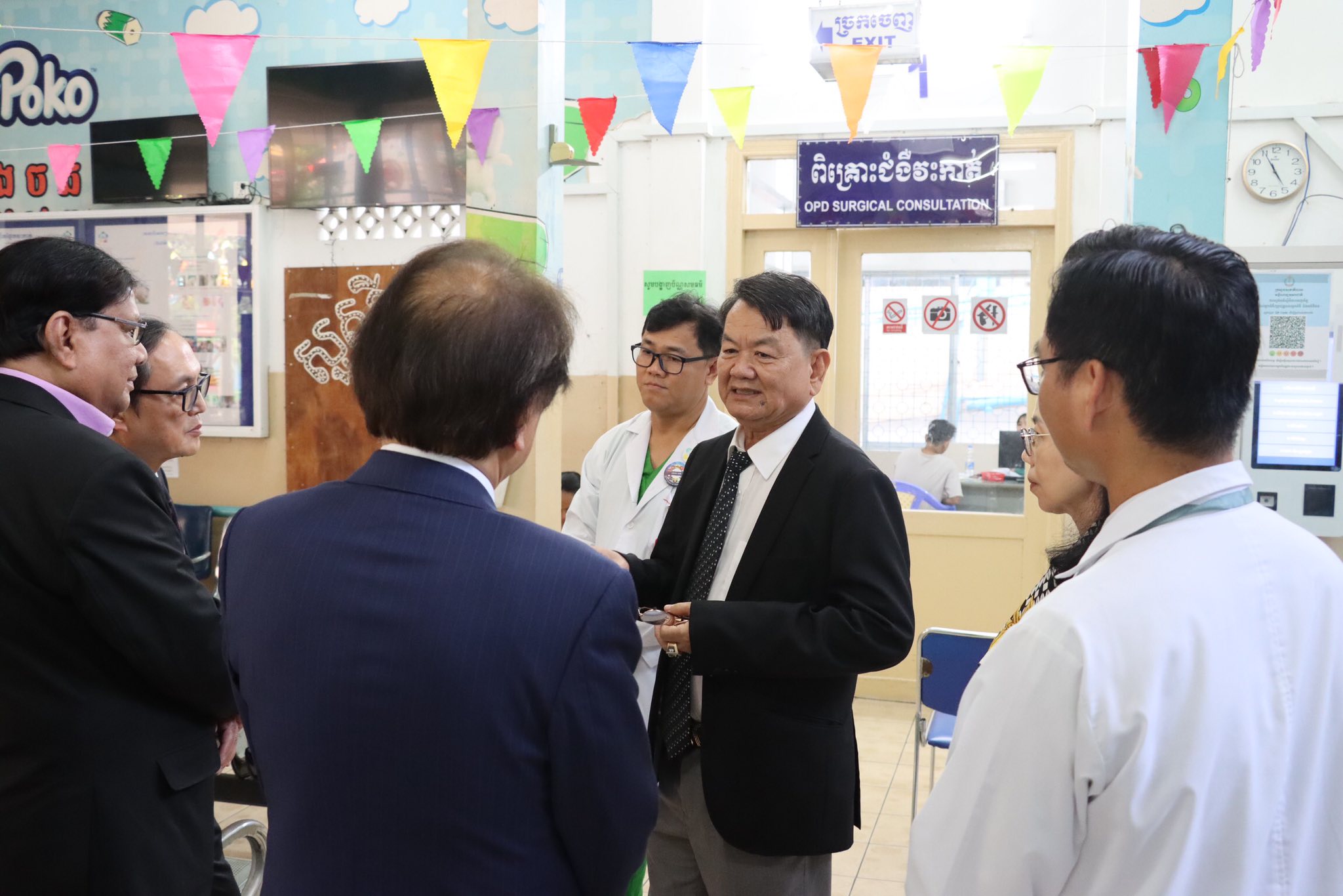 នារសៀលថ្ងៃអាទិត្យ ១១កើត ខែចេត្រ ឆ្នាំម្សាញ់ សប្តស័ក ព.ស. ២៥៦៩ ត្រូវនឹងថ្ងៃទី២៩ ខែមីនាឆ្នាំ ២០២៦ ឯកឧត្ដមវេជ្ជបណ្ឌិត ញឹប អង្គាបុស្ស នាយកមន្ទីរពេទ្យកុមារជាតិបាន ទទួលស្វាគមន៍ដំណើរទស្សនៈកិច្ចរបស់សាស្រ្តាចារ្យវេជ្ជបណ្ឌិតនៃសាធារណៈរដ្ឋប្រជាមានិតចិនដែលដឹកនាំដោយឯកឧត្តមវេជ្ជបណ្ឌិត ស្រូយ អាដុល្លារ អនុរដ្ឋលេខាធិការក្រសួងសុខាភិបាល តំណាងដ៏ខ្ពង់ខ្ពស់ឯកឧត្តមបណ្ឌិត ហេង សុខគង់ ប្រធានសម្ព័ន្ឋគ្រូពេទ្យសហភាពសហព័ន្ឋយុវជនកម្ពុជា (ស.គ.ស.ស.យ.ក) ជួបពិភាក្សាលើគម្រោងឧបត្ថម្ភផ្នែកវៈកាត់រួមទាំងការអនុវត្តន៏បច្ទេកទេសវៈកាត់ ជាពិសេសការវៈកាត់ភ្នែក ការវៈកាត់ដោយចោះ (Laparoscopy)។ ទន្ទឹមនឹងនោះដែរសាស្រ្តាចារ្យ វេជ្ជបណ្ឌិតមកពីសាធារណៈរដ្ឋប្រជាមានិតចិនក៏ចូលរួមវៈកាត់ជាមួយក្រុមគ្រូពេទ្យនៅមន្ទីរពេទ្យកុមារជាតិផងដែរ៕